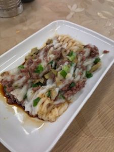 腸粉も現地で食べてみたら皮がくにゃんで味がぽやんとしていて、刻まれているザーサイと食べるとちょうどいい感じ。
